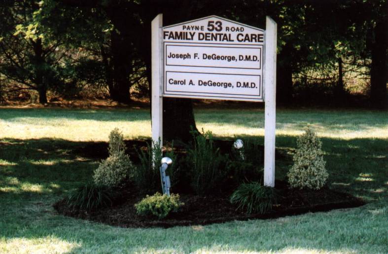 Next we have a complete property makeover...created by removing the entire old landscape and starting fresh with new ideas -- from a bed surrounding the sign...